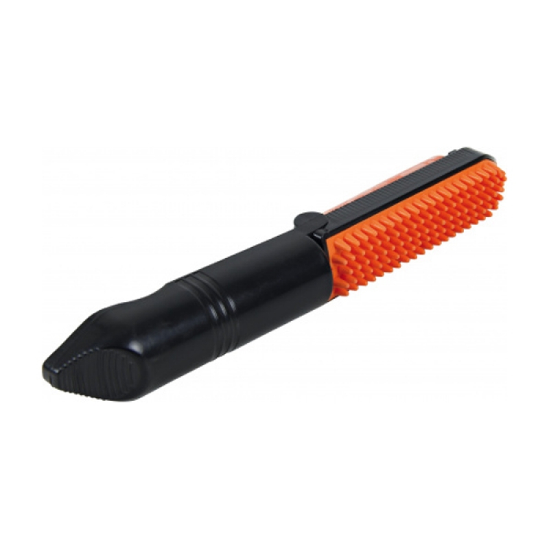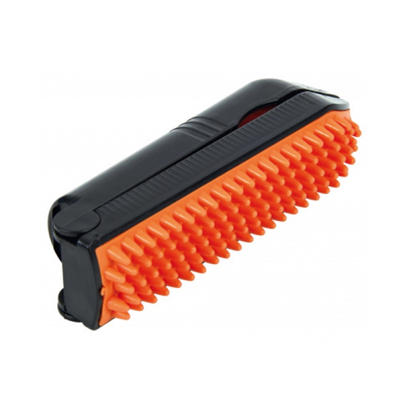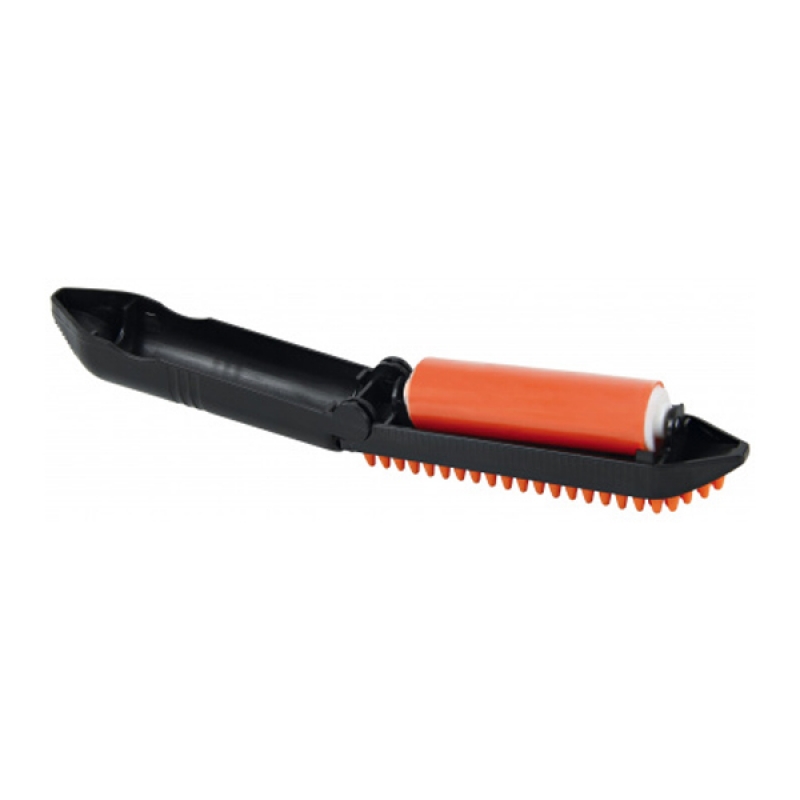 thermoplastic rubber (TPR) for e.g. upholstery and textiles frees quickly from animal hair with silicone nubs and roller brush with silicone nubs removes loose hairs from textiles silicone roller takes up dust and animal hairs silicone roller reusable: simply clean with clear water convenient with protective cover that folds open