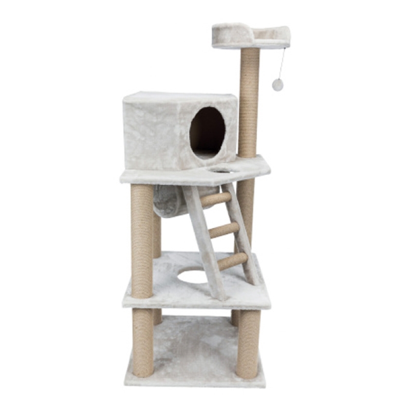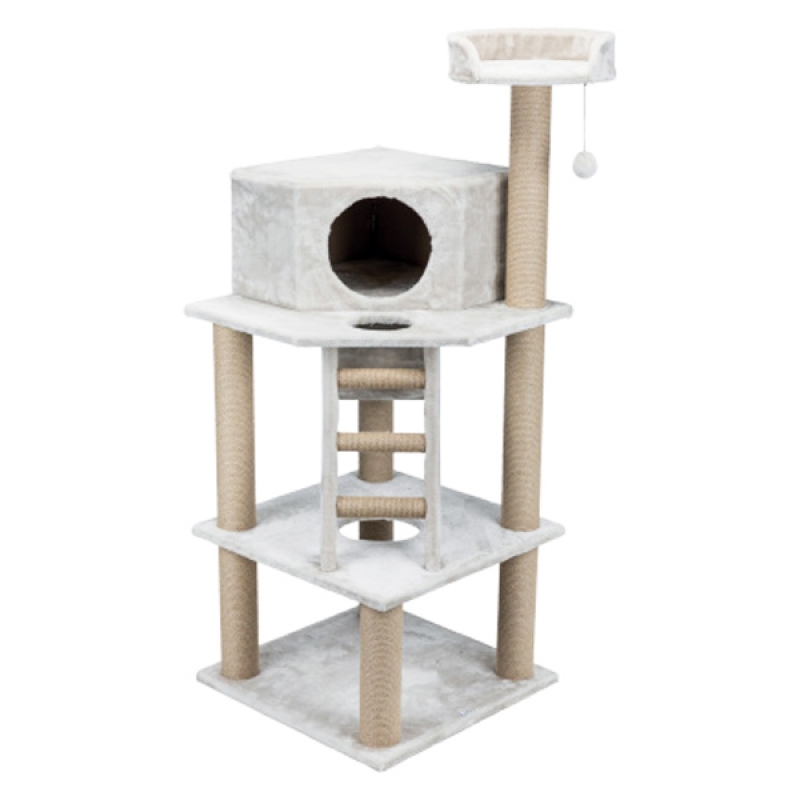 with plush cover posts wrapped in jute padded platform cave fitted with plush/fleece with toy on string colour: light grey Floor area: 60 × 60 cm Post: ø 9 cm Height: 151 cm