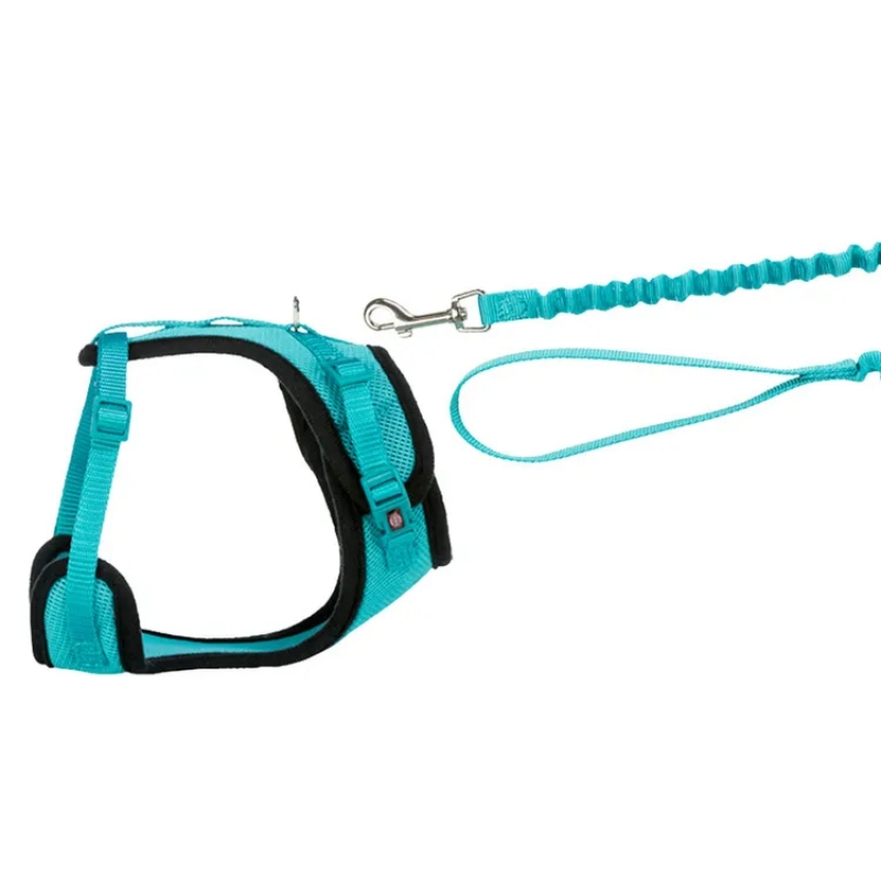 Measurements: 39-60 cm/10 mm Stomach circum.: 39-60 cm Leash: 1.00 m jerk-cushioning, fully elastic leash breathable mesh material soft padding continuously adjustable in neck and chest areas with snap buckles various colours