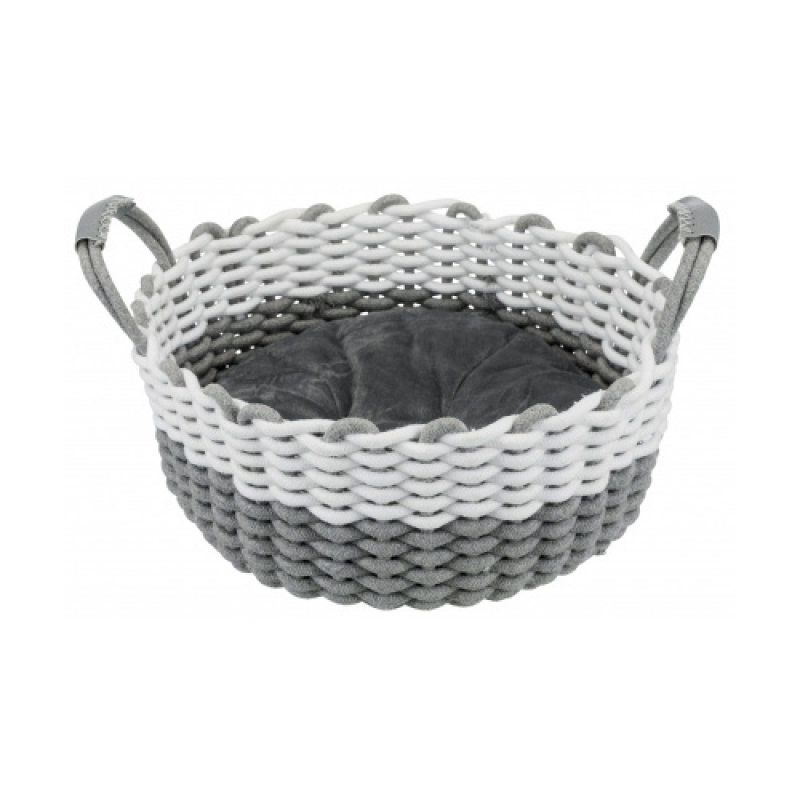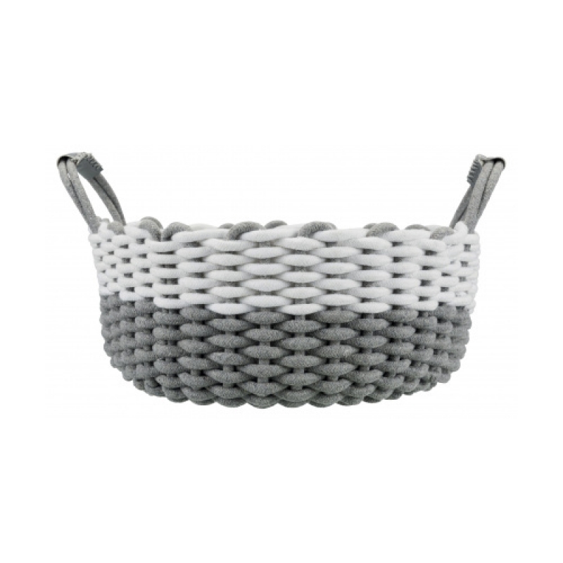 Measurements: ø 45 cm Colour: grey/white cotton mix, woven cushion with plush cover and polyester fleece filling, quilted cushion: washable by hand