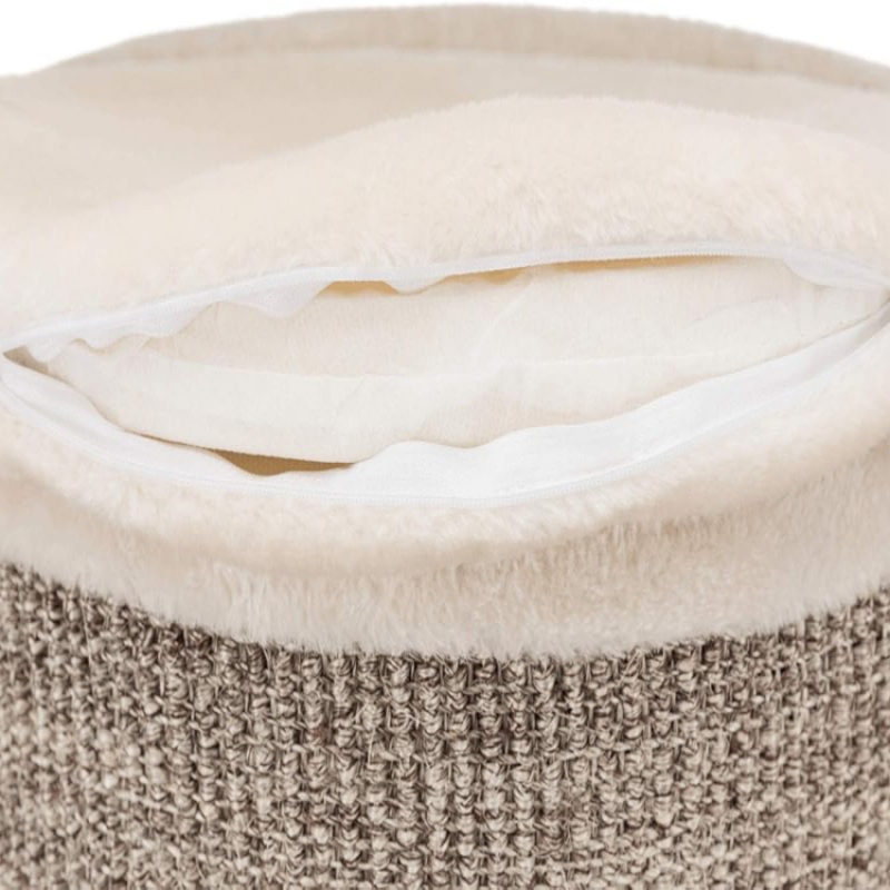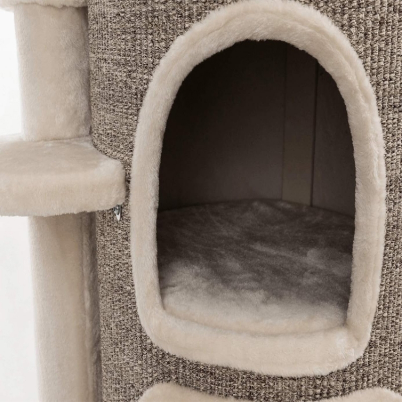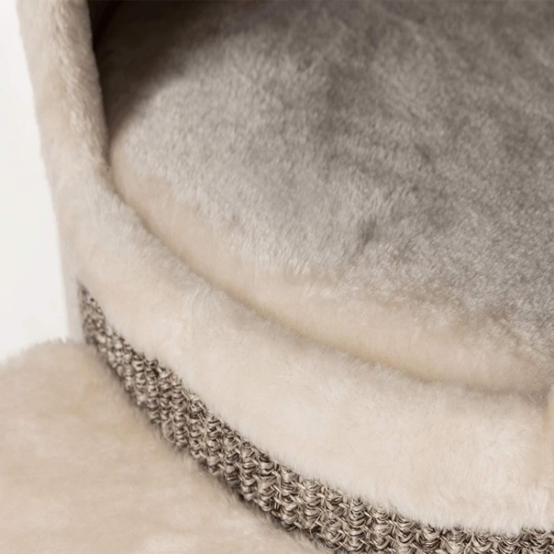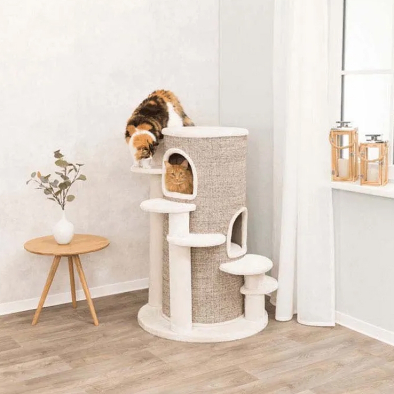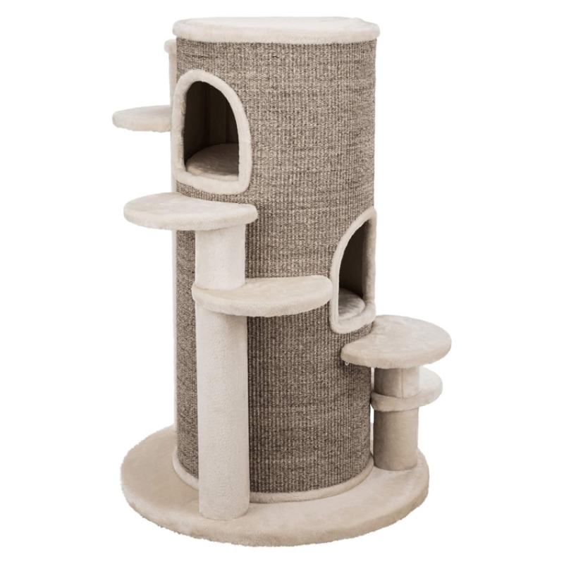 Floor area: ø 76 cm Post: ø 12/10 cm Height: 114 cm Colour: cream/brown mottled Recommended for older animals and those suffering from back and joint problems especially suitable for large cats sisal/premium quality plush (polyester) sisal surface cave fitted with plush (polyester) with climbing aids 4 vital cushions with viscoelastic foam: machine wash up to 30 °C/cushion insert: hand wash perfect molding to the pet's body shape and optimal pressure distribution thick, heavy base plate colour: cream