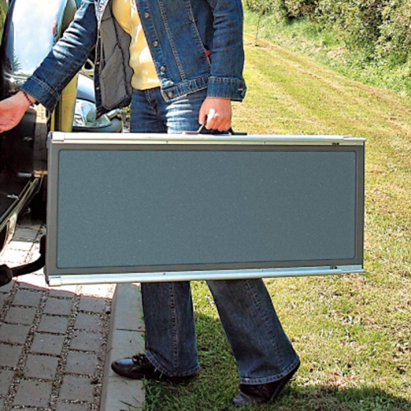 aluminium/plastic anti-slip coating and safety rails on the sides protects the joints of the pet highly recommendable in cases of arthrosis and arthritis can also be used for preventative measures adjustable length weight 5.8 kg universal use easy to clean Measurements: 43 × 100-180 cm up to: 120 kg