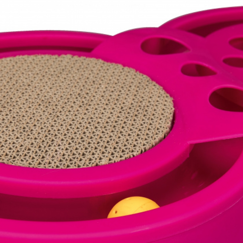 Measurements: 60 × 33 cm plastic/scratching cardboard with playing groove, fumbling area and exchangeable scratching cardboard tennis and rattling ball inside