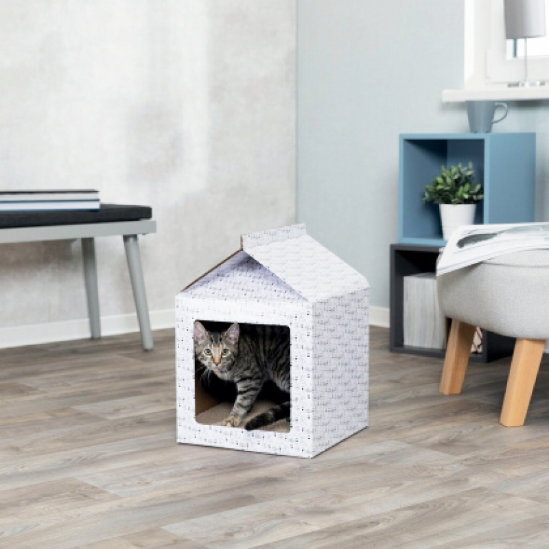 Measurements: 34 × 48 × 34 cm Colour: white cardboard for sleeping and scratching