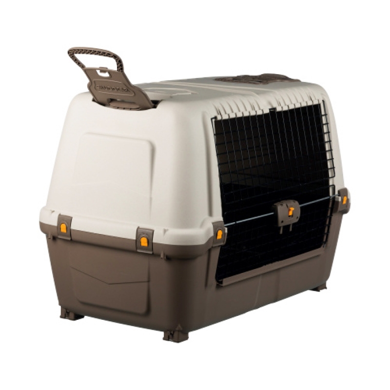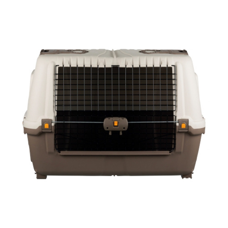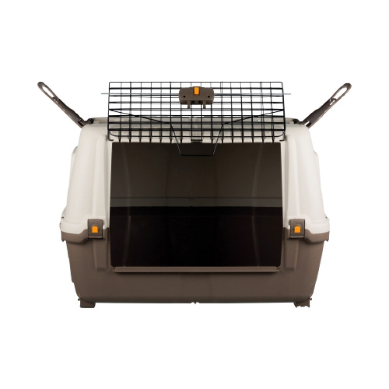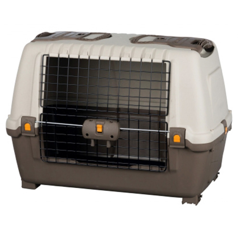 plastic optimal utilisation of car boot space due to slanted sides with lockable metal door that folds open ventilation slits for optimal air circulation lateral foldable handles allow easier pulling of the box 2 roomy storage trays with drainage mat Sizes: Measurements: 77 × 54 × 44 cm Measurements: 89 × 62 × 51 cm Measurements: 100 × 68 × 60 cm