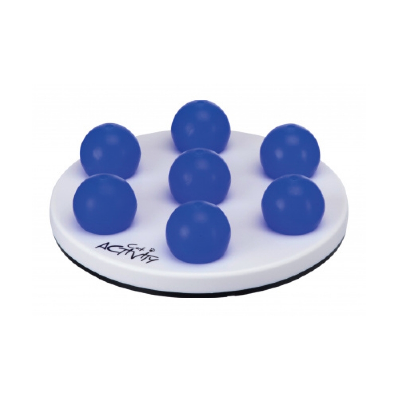 Measurements: ø 20 cm board with 7 ball-shaped covers physical exercise and mental stimulation trains the cat’s skills plastic non-slip due to rubber ring suitable for old or sick cats as well incl. booklet with tips and tricks for optimal training
