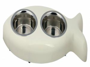2 stainless steel bowls with plastic holder non-slip due to rubber feet Feed bowls dishwasher proof