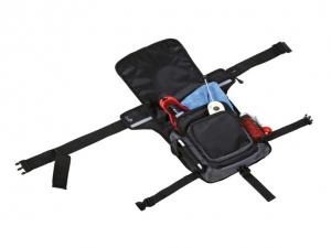 made of durable polyester perfect fit through adjustable straps at waist and leg 3 zipped pockets stable treat pocket closable with drawstring mobile phone pocket and net pocket on side reflective stripe for more safety belt: 57–138 cm black/grey