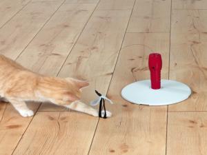 Measurements: ø 22 × 18 cm plastic motor whirls the toy around 2 playing modes are available: continuous mode or random speed changes stimulates the cat's hunting instinct incl. spare toy battery-operated (2 AAA micro batteries not included)