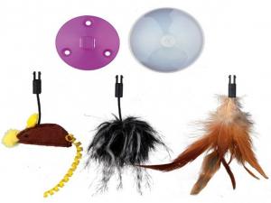 plastic mouse squeaks and moves its tail from side to side unpredictably stimulates the cat's hunting instinct incl. 3 different exchangeable toys for attaching with suction cups or screws battery-operated (3 AA mignon batteries not included)