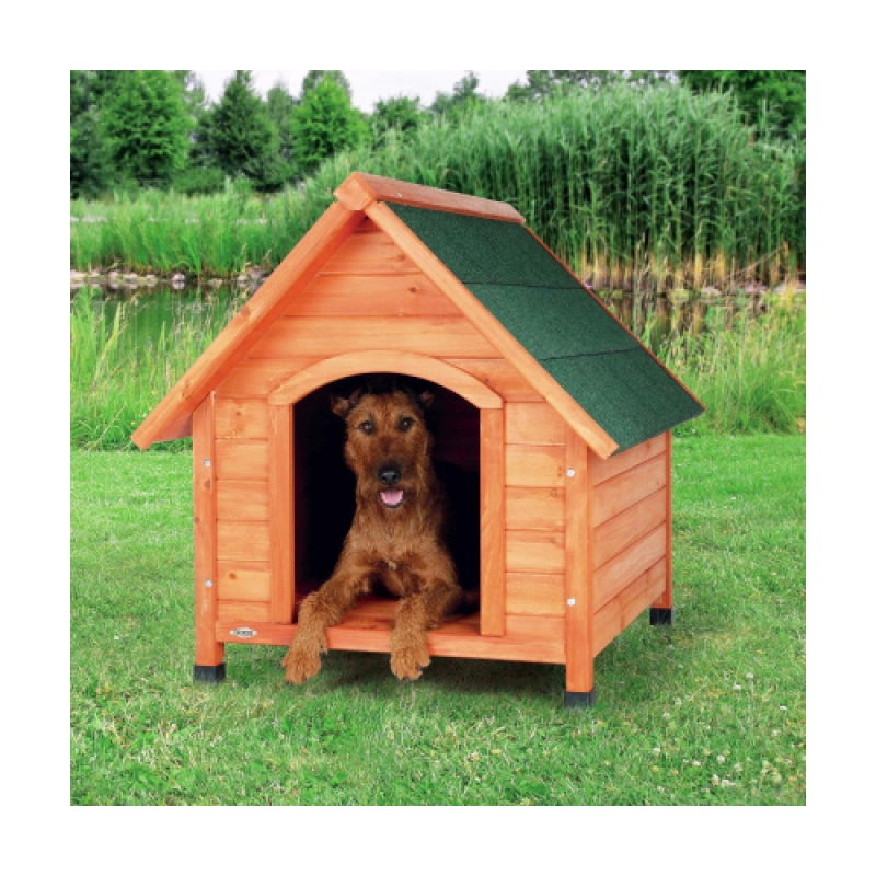 glazed pine mineral surface roofing felt feet adjustable in height provide secure stand legs protect against damp and cold from the ground and provide good air circulation below the kennel Size: S : Measurements: 71 × 77 × 76 cm Size: M : Measurements: 77 × 82 × 88 cm Size: L : Measurements: 83 × 87 × 101 cm Size: XL : Measurements: 96 × 105 × 112 cm
