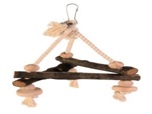 natural wood triangular with natural wooden slices and wooden beads item no. 5883 with twig slices 27 × 27 × 27 cm cockatiels, parakeets