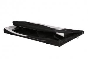 Small / Measurements: 61 × 43 × 46 cm / Height: 43 cm Small-Medium / Measurements: 76 × 48 × 51 cm / Height: 48 cm Medium-Large / Measurements: 91 × 58 × 61 cm / Height: 58 cm Large / Measurements: 99 × 65 × 71/61 cm / Height: 65 cm made of high quality polyester particularly stable due to a high quality metal framework can be opened on three sides with net inserts for good air circulation topmost netting can be covered up to protect the pet inside Velcro underneath the box prevents it from slipping removable apron protects bumper against scratching can also be used outdoors with bottom flaps and pegs with side pocket and bottle holder cuddly insert made of lambs fur look colour: black/grey