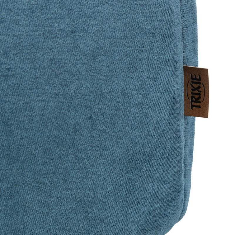 Measurements: 35 × 30 × 40 cm Colour: petrol/white-grey soft upholstery fabric/plush polyester cover foam padding reversible cushion with viscoelastic foam-flakes/foam-flakes (memory effect) cushion cover removable non-slip bottom